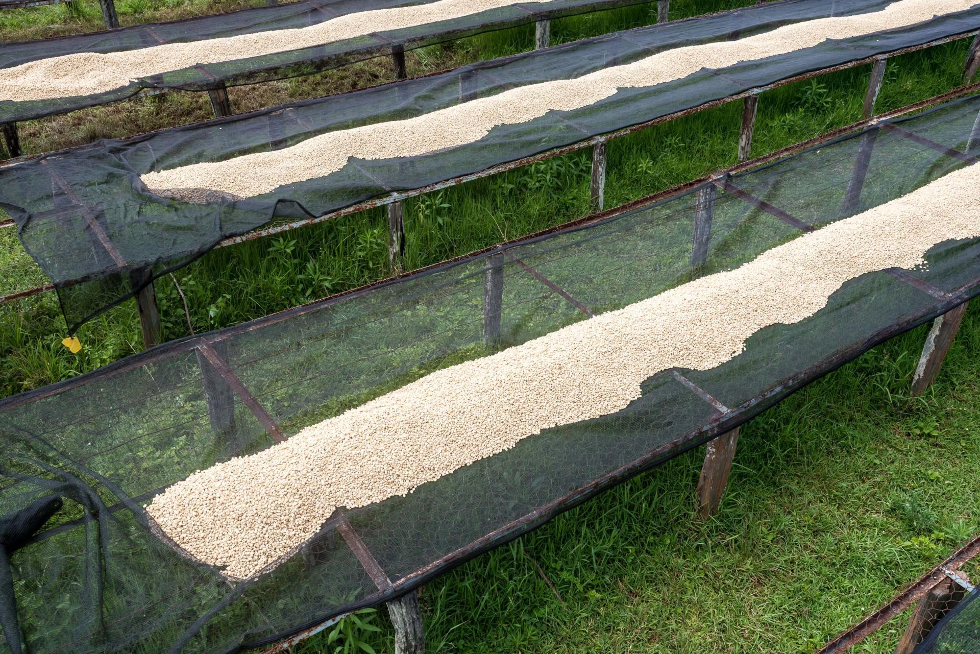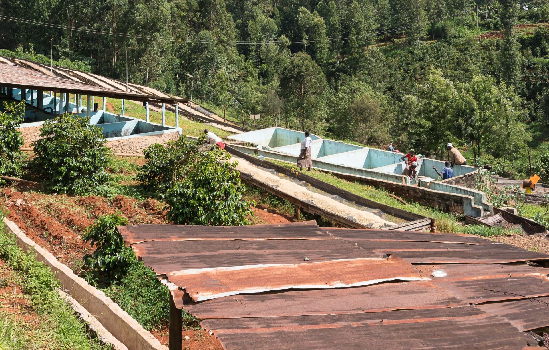 익은 커피 체리는 생산자들이 손으로 선별 수확하여 같은 날 Mathare-ini 워싱 스테이션으로 운반됩니다. 그곳에서 육안 선별을 통해 덜 익었거나 손상된 체리를 제거한 후 펄핑을 진행합니다. 이후 기후 조건에 따라 12~24시간 동안 깨끗한 물이 담긴 탱크에서 발효시켜 점액질을 분해합니다. 발효가 완료되면, 커피는 수로에서 깨끗이 세척되며 밀도에 따라 분리됩니다. 이후 원두의 안정화와 컵의 투명도를 높이기 위해 추가로 24시간 동안 신선한 물에 침지합니다. 건조는 7~15일 동안 고상 건조대에서 진행되며, 고른 건조와 결점 방지를 위해 지속적인 뒤집기가 이루어집니다. 이상적인 수분 함량에 도달하면 파치먼트 상태로 휴지 기간을 거친 뒤 탈각되어 수출 준비를 마칩니다.